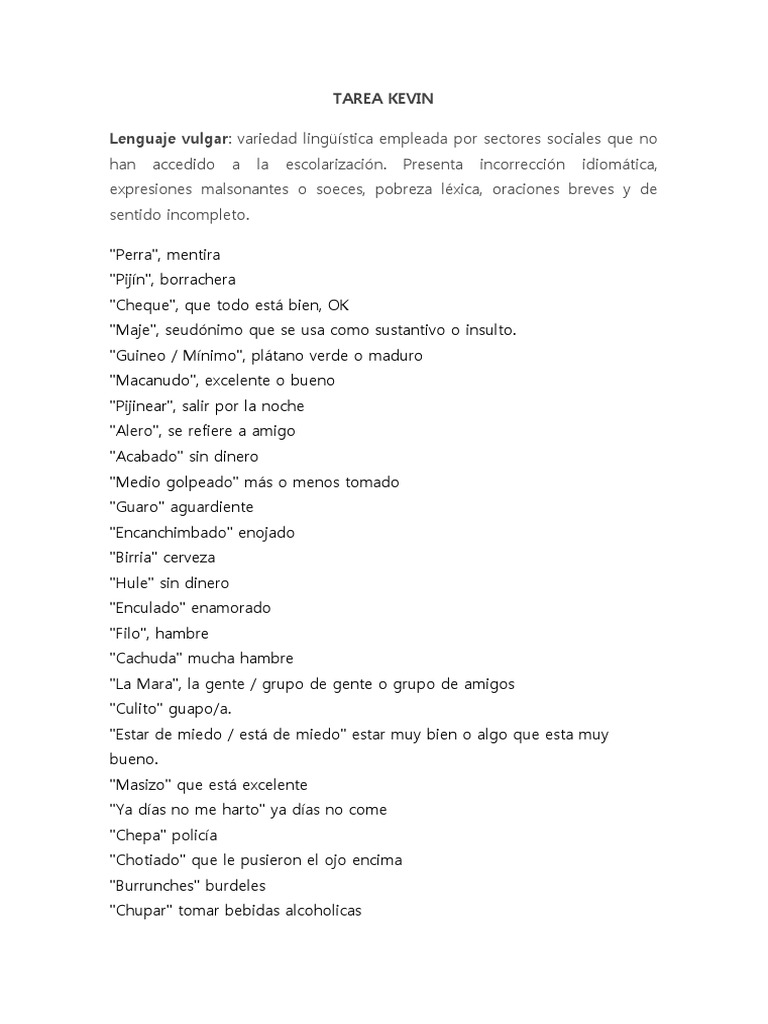 Ejemplos De Lenguaje Vulgar